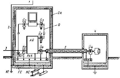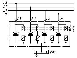 Рис. 5.1. Устройства для защиты от перенапряжений при централизованном электропитании устройств оборудования в здании |